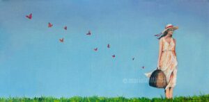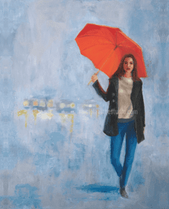 The Red Umbrella is a 24″x18″ Oil on canvas. Date- 2022