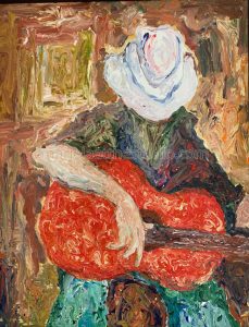 Man & Red Guitar is a 3o”x24” Acrylic on Canvas. Date- 2000